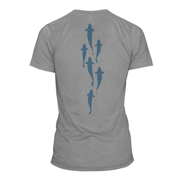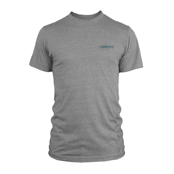 Swimming Spine crew T-shirt in Heather Gray. Soft feel 60% Cotton / 40% Polyester, athletic/trim cut (runs small) Printed in the USA.